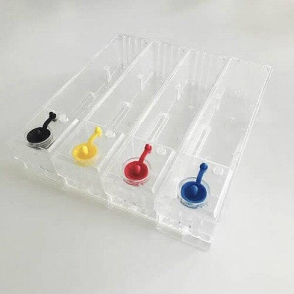 Mevcut yazıcınıza entegre edebileceğiniz bu tanklarla kartuşlarınızı doldurmaya gerek kalmadan, dışarıdan mürekkep takviyesi yapabilirsiniz. Hortumları ve tıpaları takılmış haldeki bu tankları kolay dolum kartuşlarına ya da bazı orijinal kartuşlara direkt olarak takabilirsiniz.